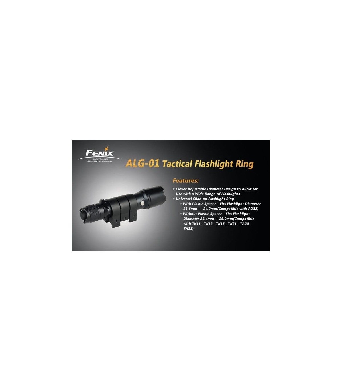 Este anillo es compatible con las linternas fénix TK22, TK15, TK12, TK11 y PD35.