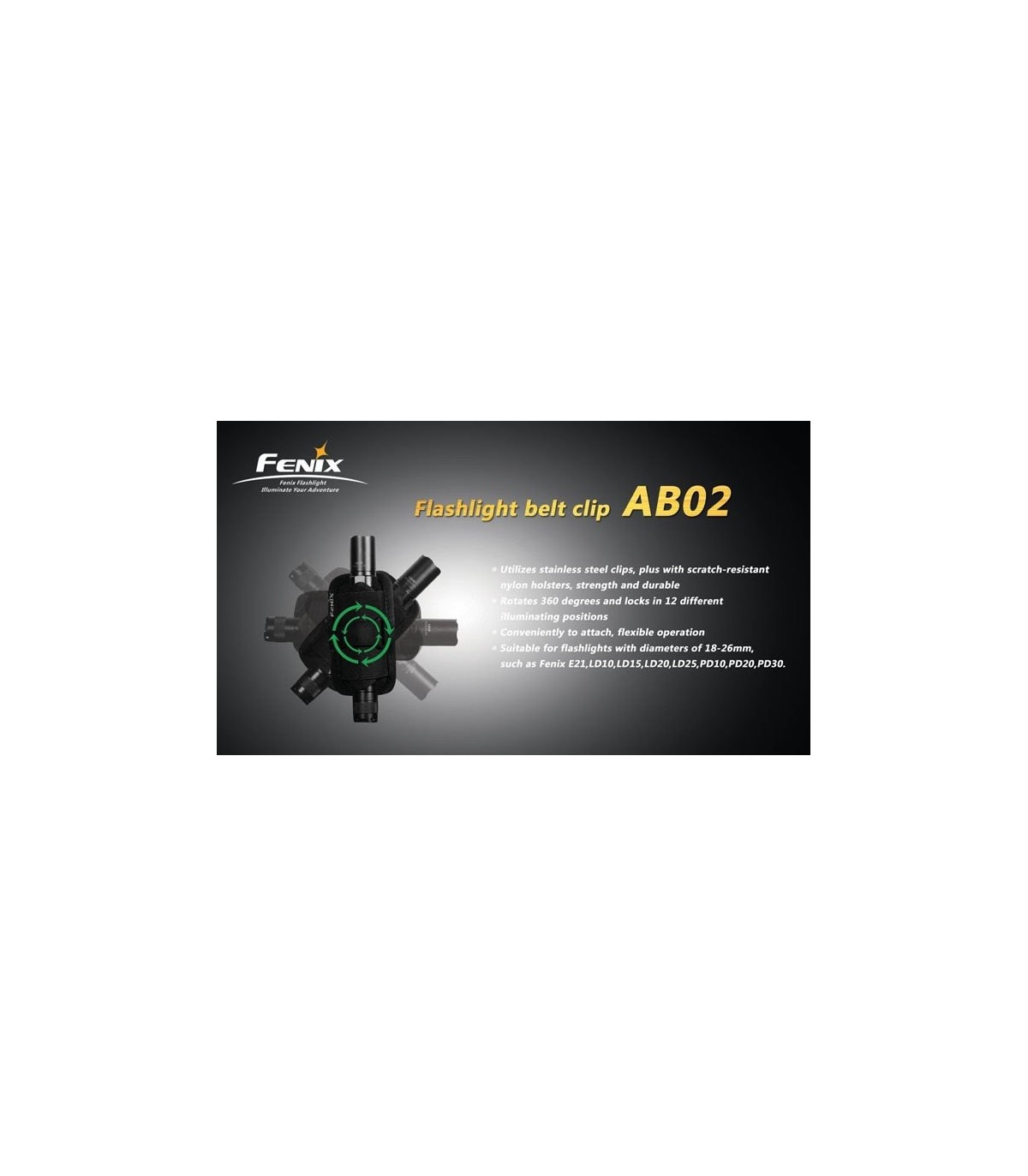 Clip giro 360º para llevar en el cinturón las Linternas Fénix PD36R, Pd35, Pd32, Pd25, Ld22, Ld12-N, E35-UE, E25-UE, E30R, E18R