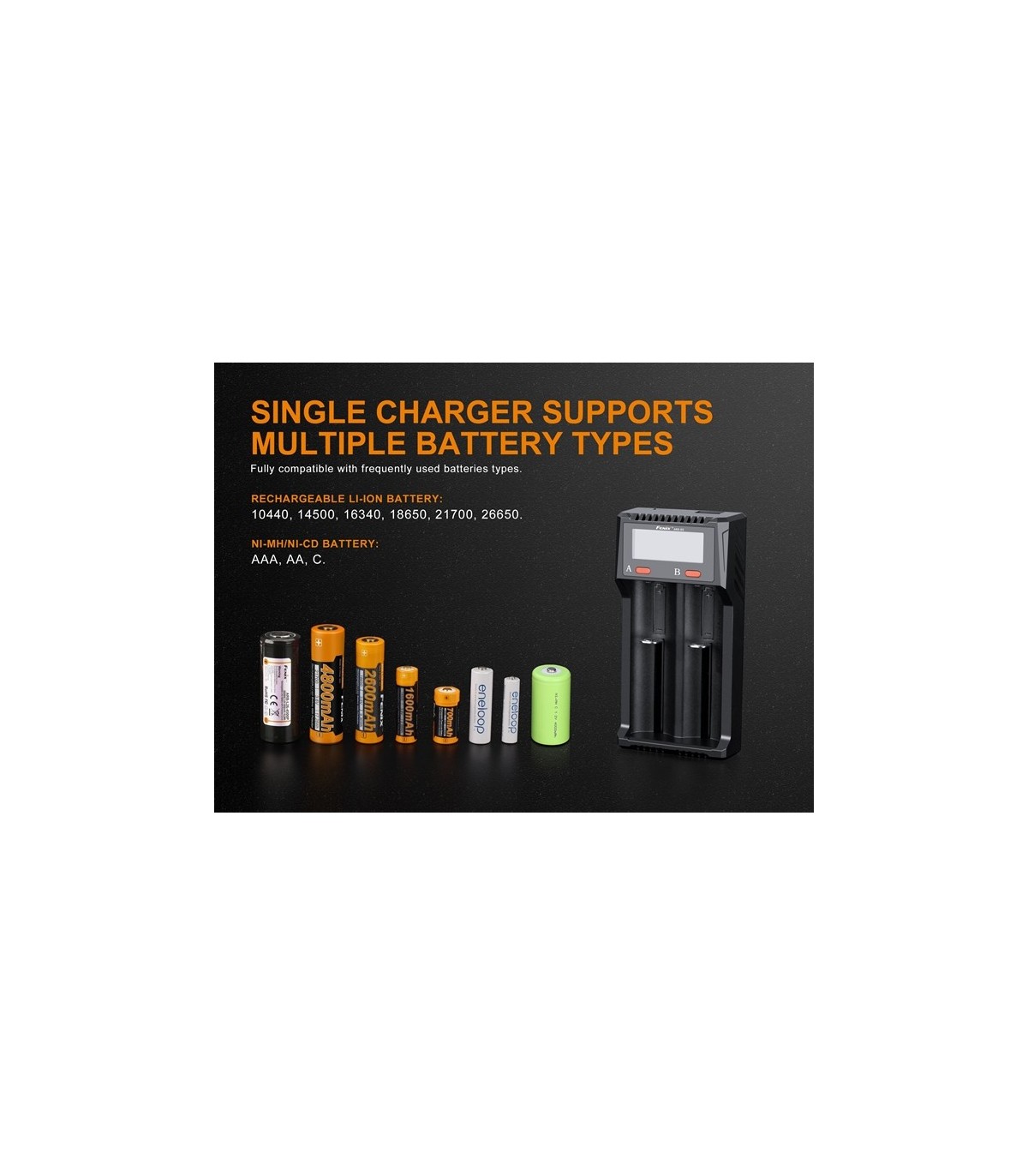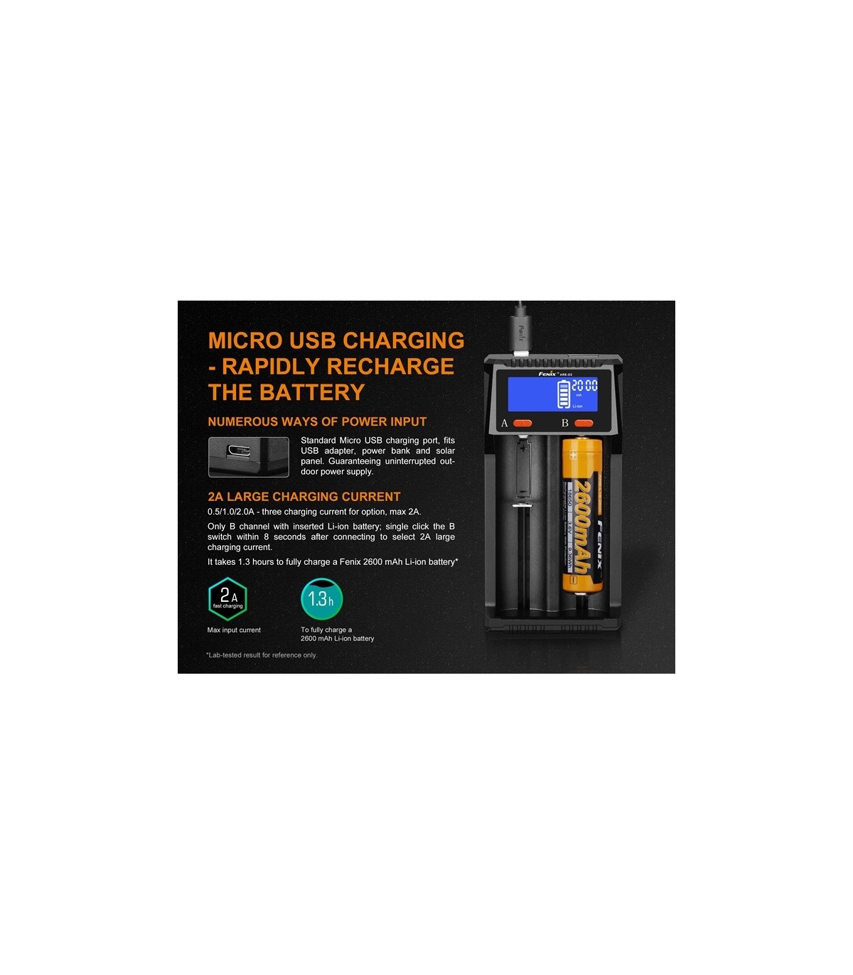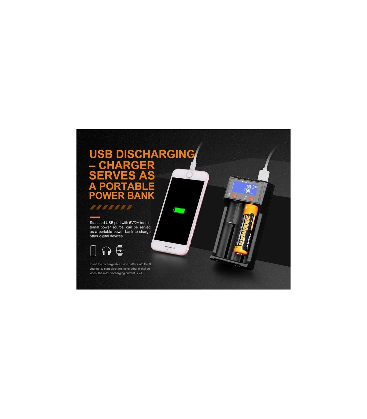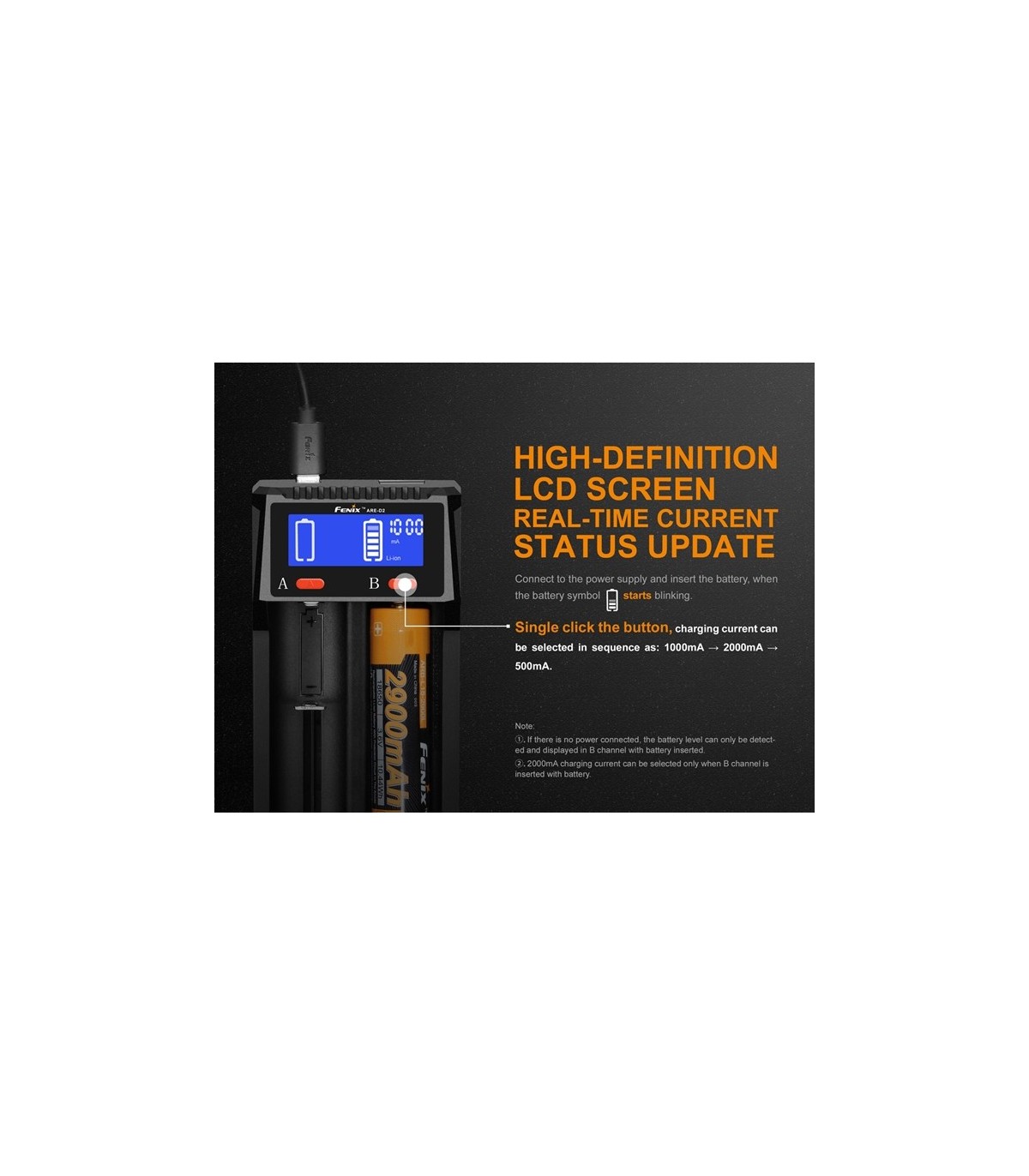 El Fenix ARE-D2 es un cargador inteligente de dos canales que cuenta con carga Micro USB y funcionalidad de descarga USB. Es compatible con baterías de iones de litio y Ni-MH / Ni-Cd; 2 Una gran corriente de carga hace que la carga sea aún más rápida. Una pantalla LCD de alta definición muestra claramente el estado de carga, descarga y batería. Los cargadores también incluyen múltiples circuitos de protección incorporados que garantizan que la carga y el uso general sean fáciles de usar y seguros. Microprocesador controlado por chip de carga regulada digitalmente para extender la vida útil de la batería.