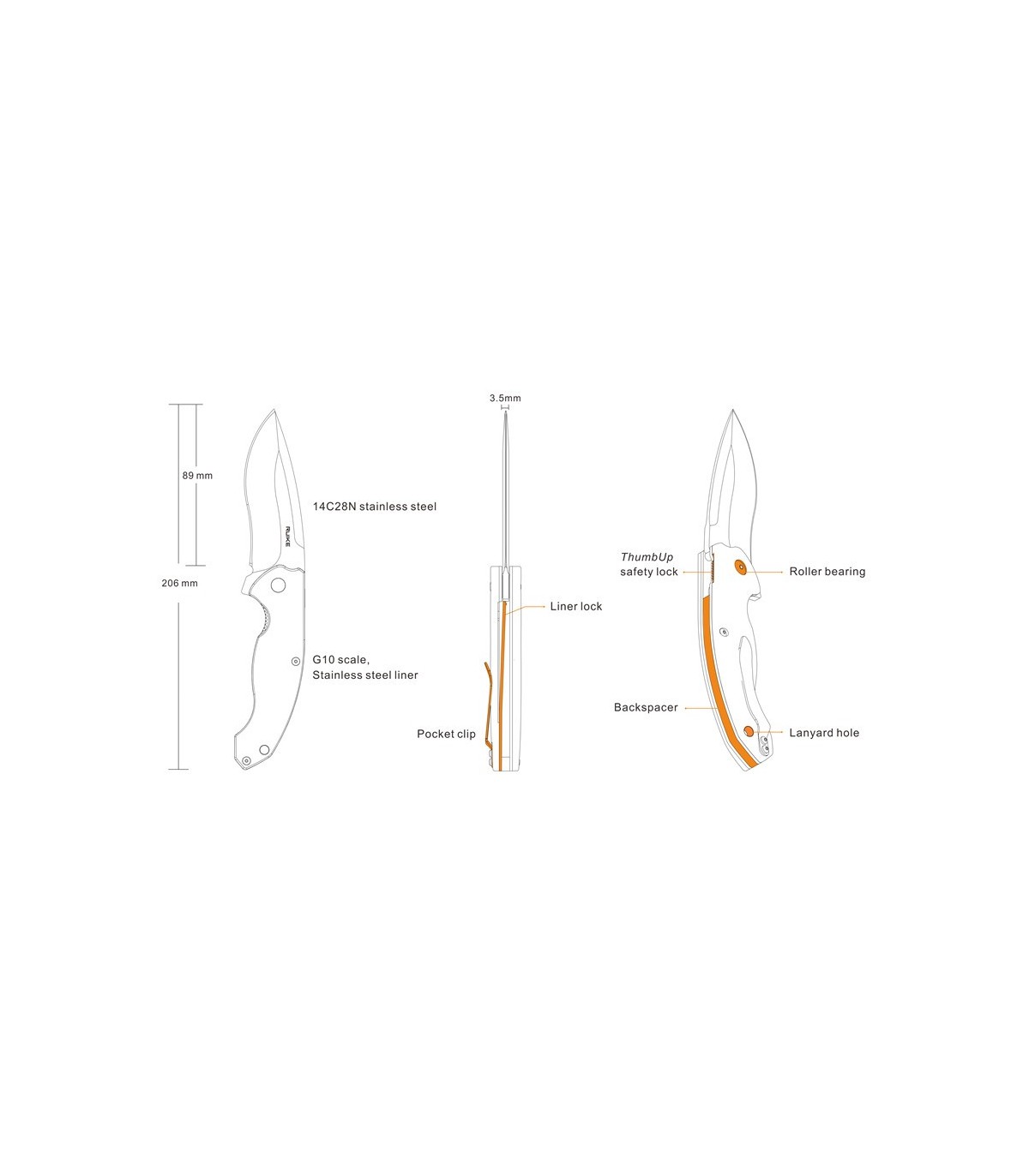 - Estabilidad y resistencia a la corrosión. En cuanto a este cuchillo, el 14C28N es procesado intensivamente por RUIKE utilizando enfriamiento y tratamiento criogénico, que presenta una dureza ideal de 58 ~ 60 HRC.