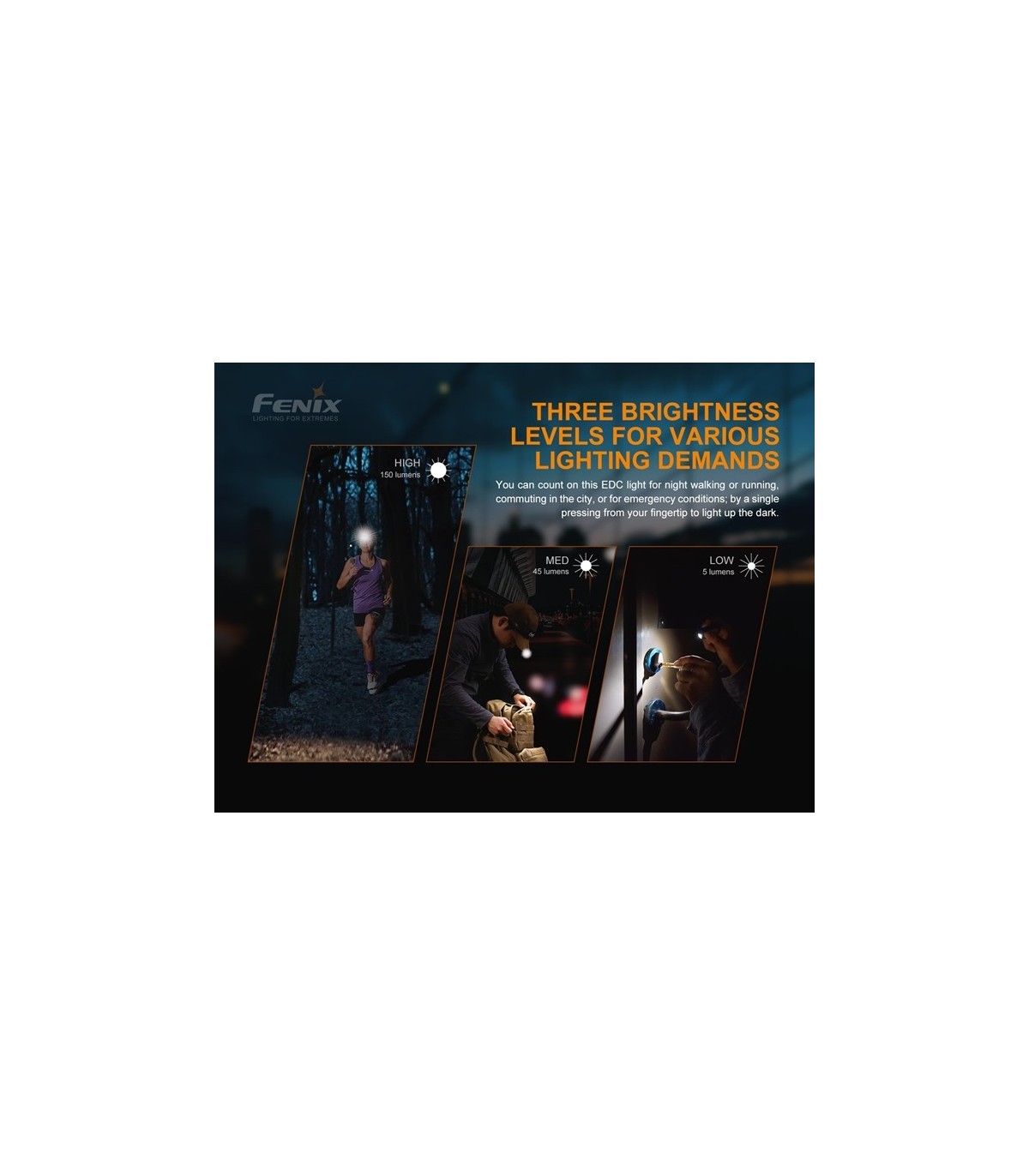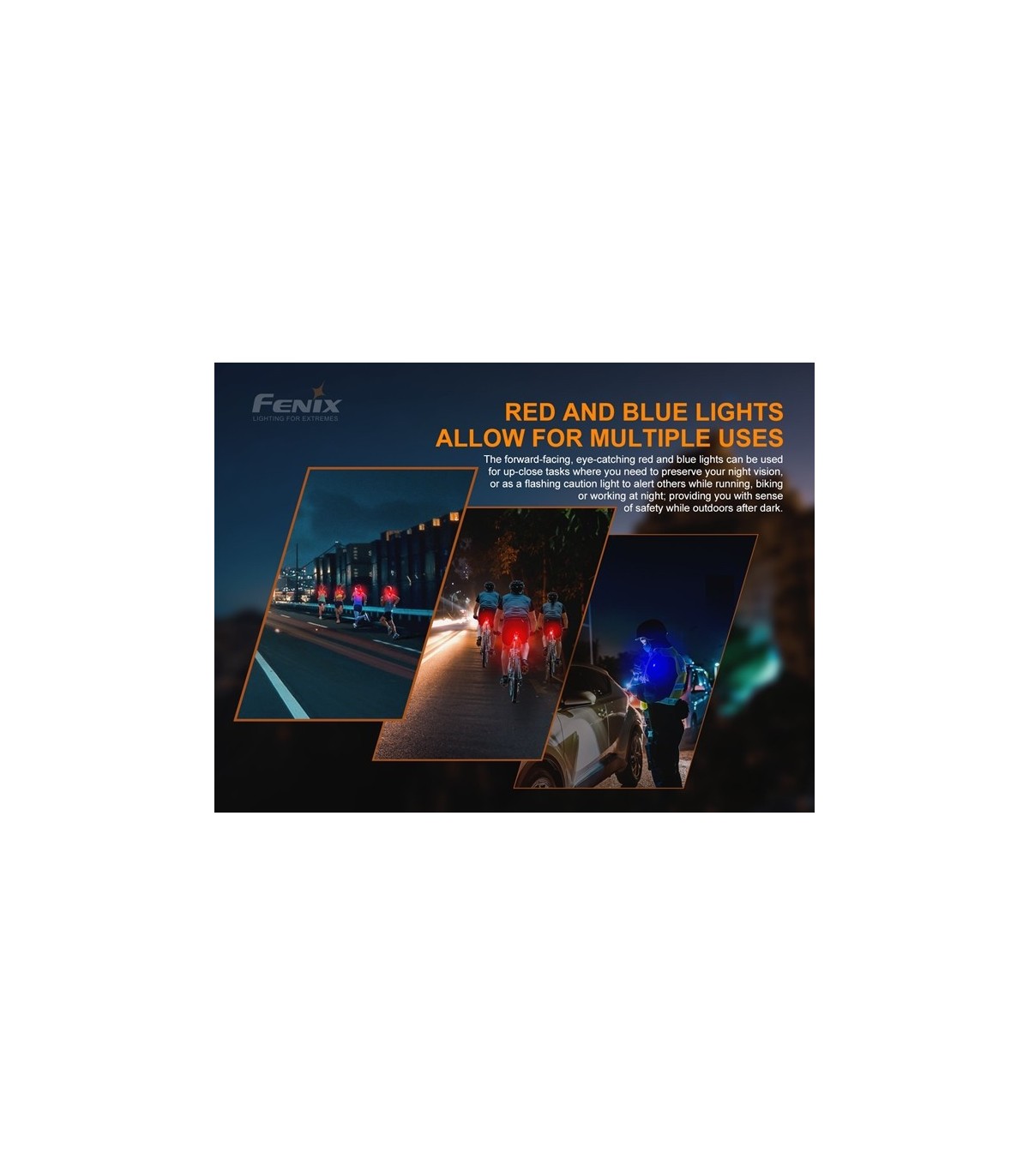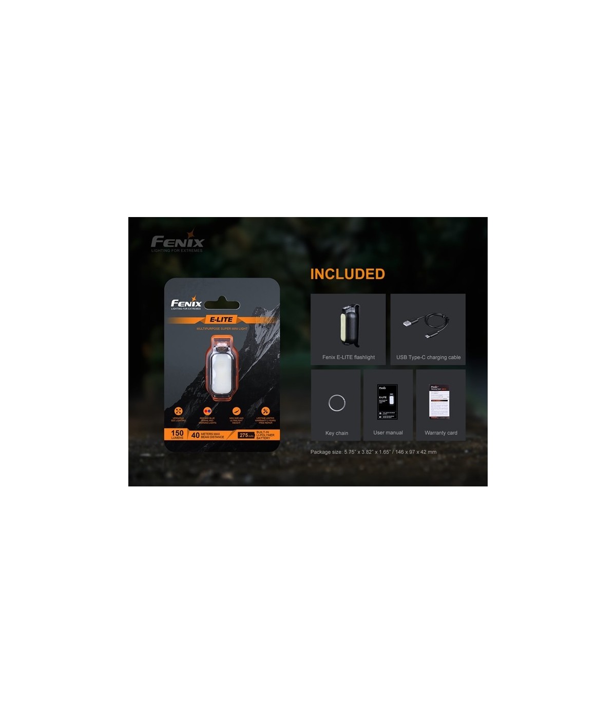 La Fenix E-LITE es una súper mini luz multiusos que se puede enganchar en una gorra, bolsillo, mochila o parte trasera de una bicicleta, también llevar en la cintura o en el pecho. Tiene dos luces: una en la parte superior que proporciona tres niveles de brillo de 5 a 150 lúmenes para las necesidades de iluminación diarias, y otra en la parte delantera que proporciona llamativas luces rojas y azules para la transmisión de señales en condiciones de emergencia. Además, está equipado con una interfaz de carga tipo C.