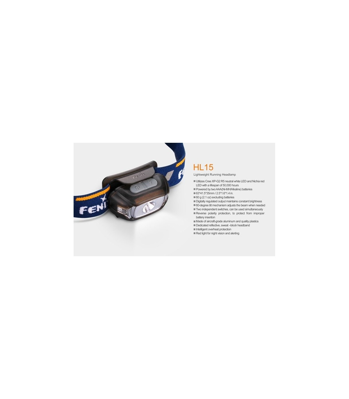 El frontal de Fenix HL15 es un frontal muy ligero. Está equipado con una cinta de cabeza reflectante, un Led blanco neutro para una mejor reproducción de los colores y dos Leds rojos para alertar a otros. Tiene cuatro niveles de brillo y una clasificación IP67, el HL15 es un frontal perfecto para utilizar en la carretera, senderismo, camping, running, etc
