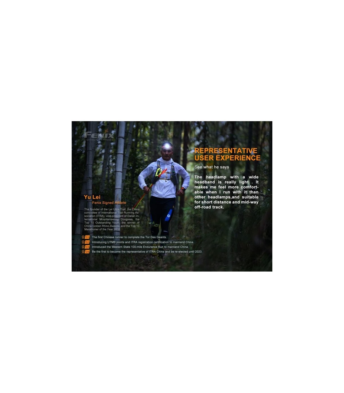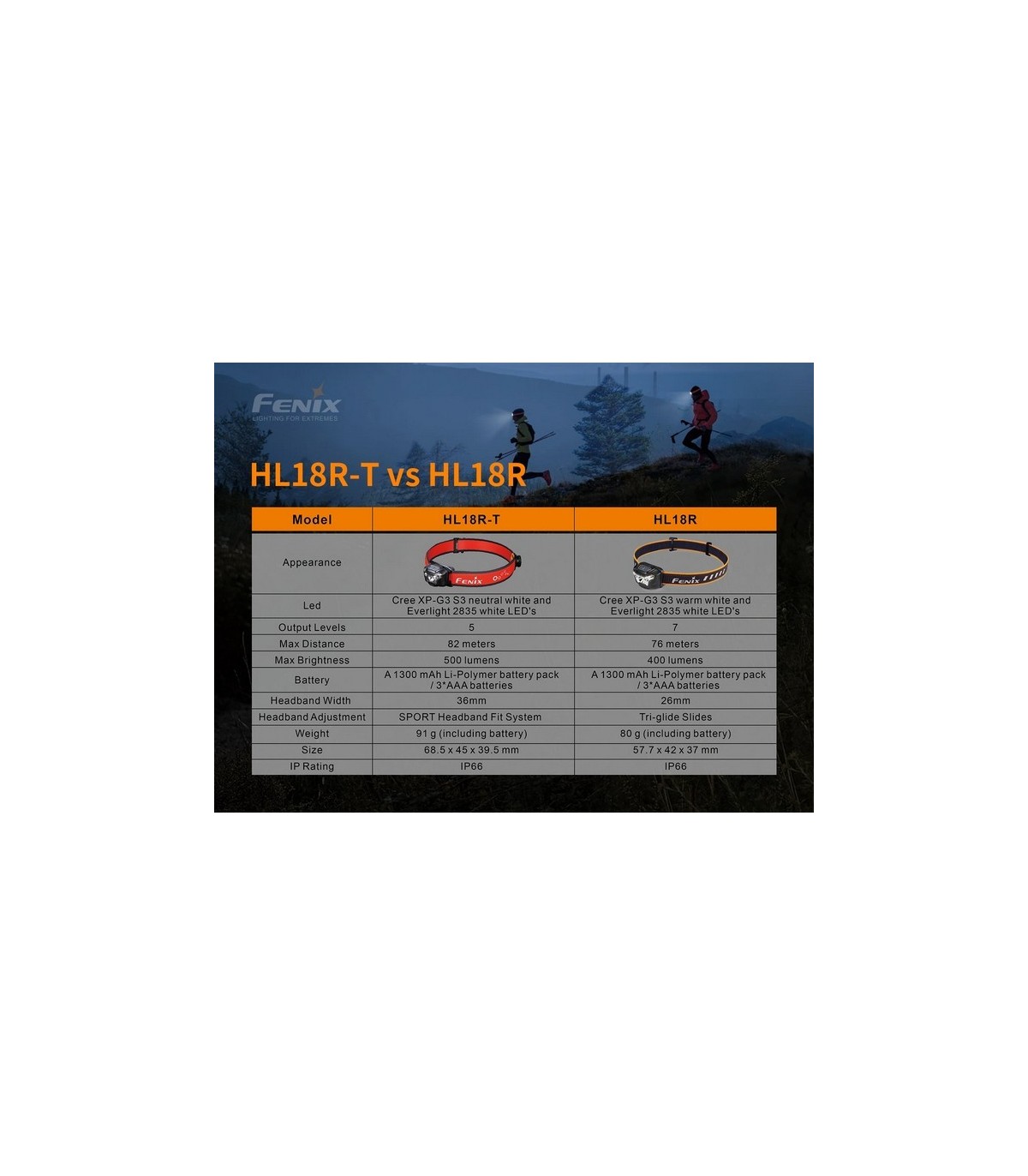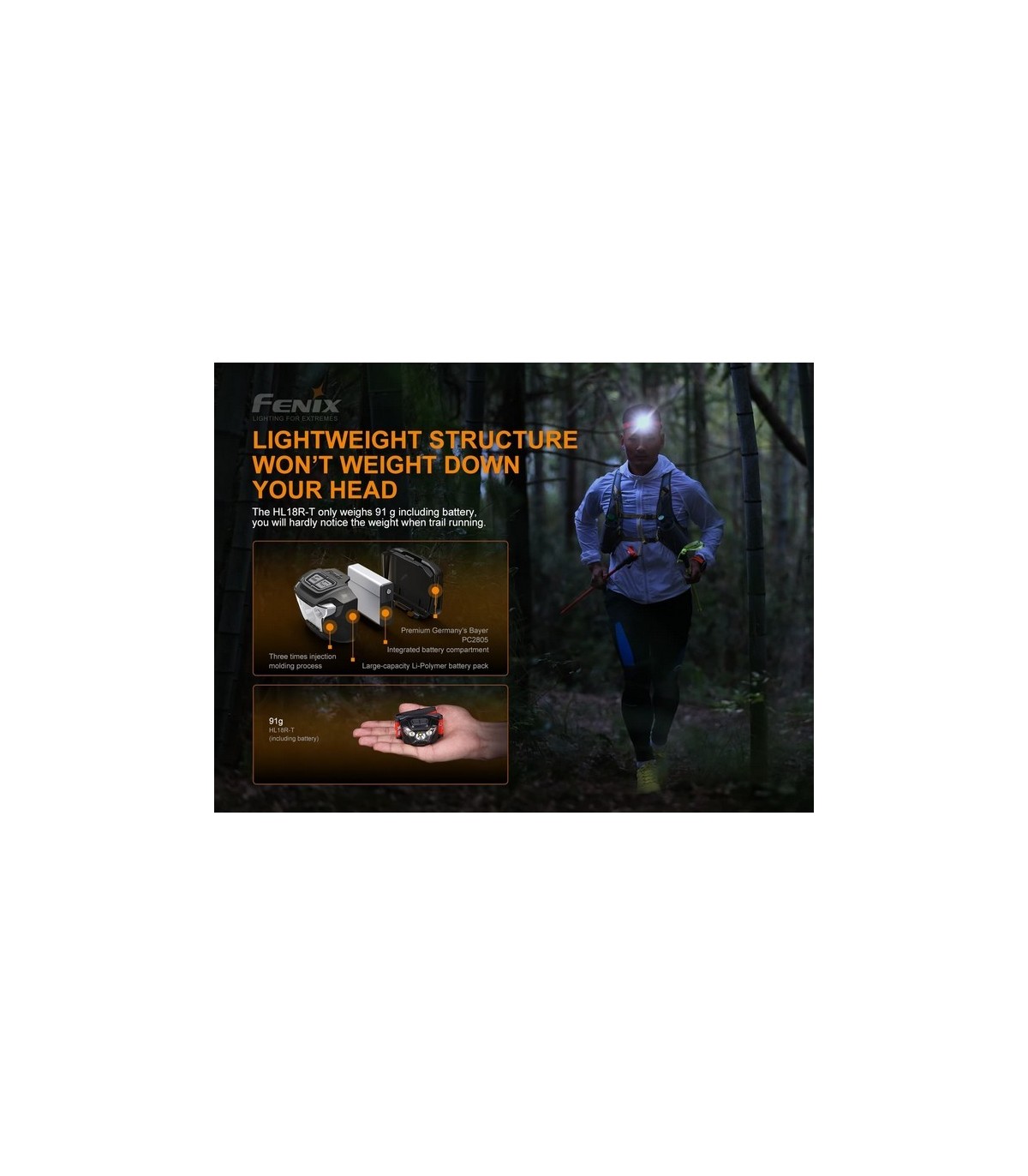 El frontal Fénix HL18R-T destaca por ser ligero e ideal para trail running. Este atractivo frontal tiene dos opciones de fuente de alimentación controladas por dos interruptores independientes. Puede usar el paquete de baterías de polímero de litio ARB-LP1300 incluido como primera opción, y como opción secundaria tenemos las 3 baterías AAA, estas dos opciones de fuente de energía brindan tranquilidad durante las carreras largas que permitirán no quedarnos sin luz en los momentos más necesarios. Para mayor seguridad, la diadema del Fénix HL18R-T es reflectante y canaliza el sudor. Además, puede cargar fácilmente el frontal con el cable Micro USB incluido. La salida máxima del Fénix HL18R-T es de 500 lúmenes, con un modo de ejecución de 20 horas para trail running.
