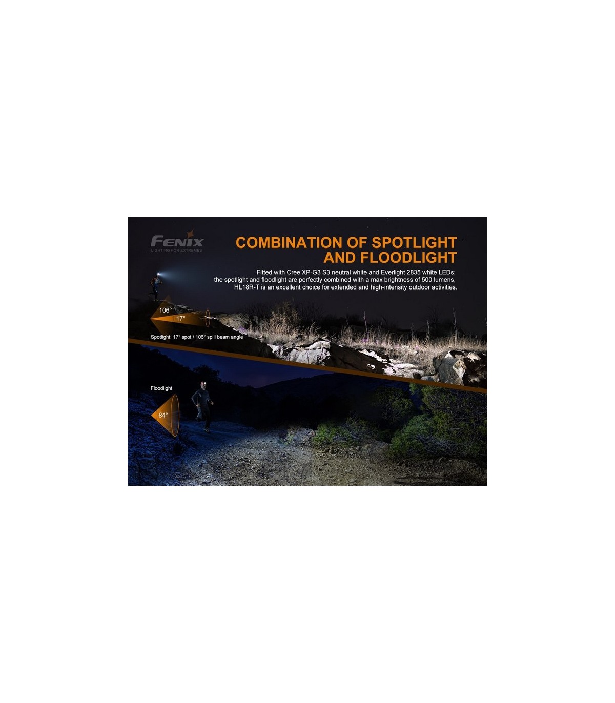 Frontal HL18R-T 500 lumenes para Trailrunning (incluye batería recargable) funciona también con 3xAAA
