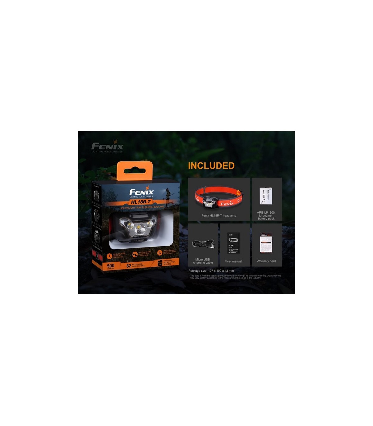 Incluye: Frontal HL18R-T, cable de carga micro usb-USB, batería litio polímero 1300 mAh ARB-LP-1300. Garantía y manual de instrucciones en español.