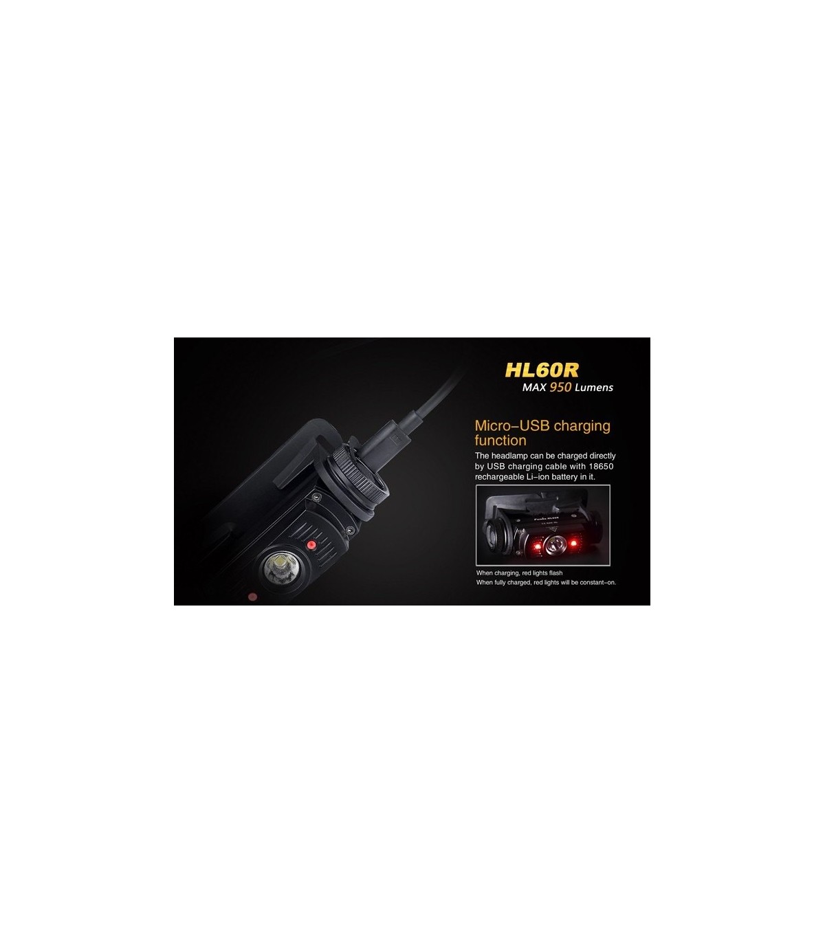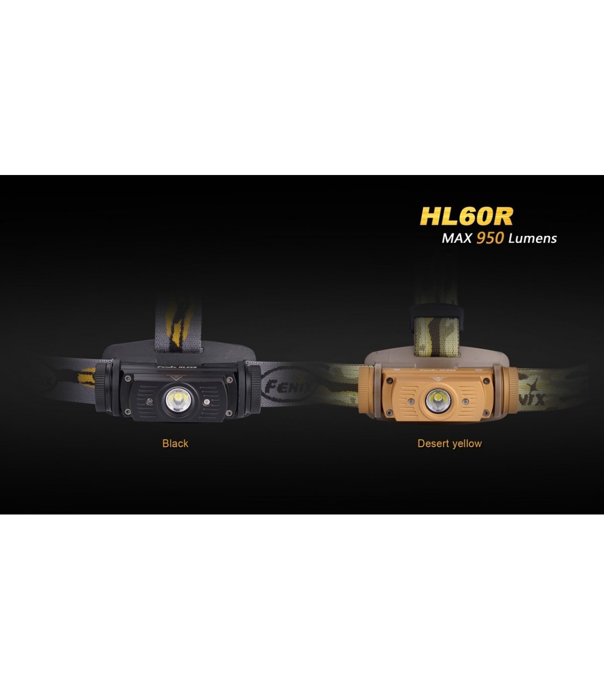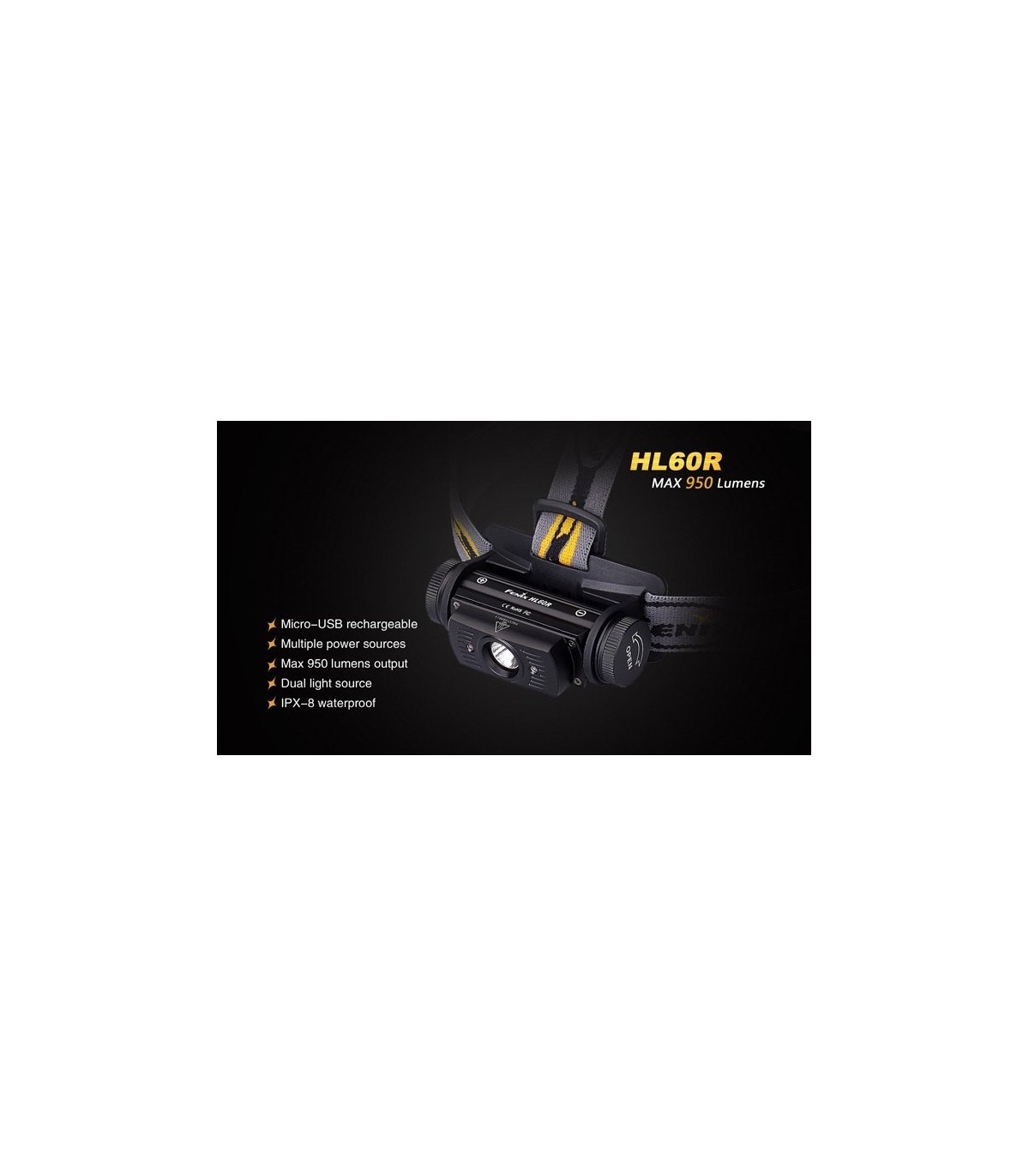 Frontal Led Fénix HL60R 950 Lúmenes (micro usb recargable-incluye batería 18650) color negro