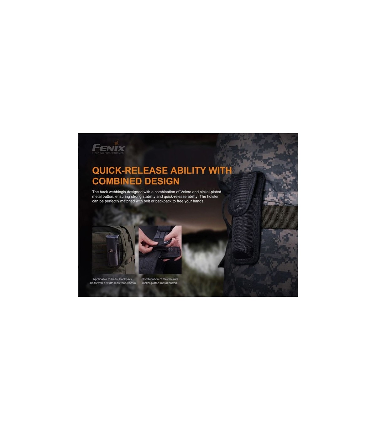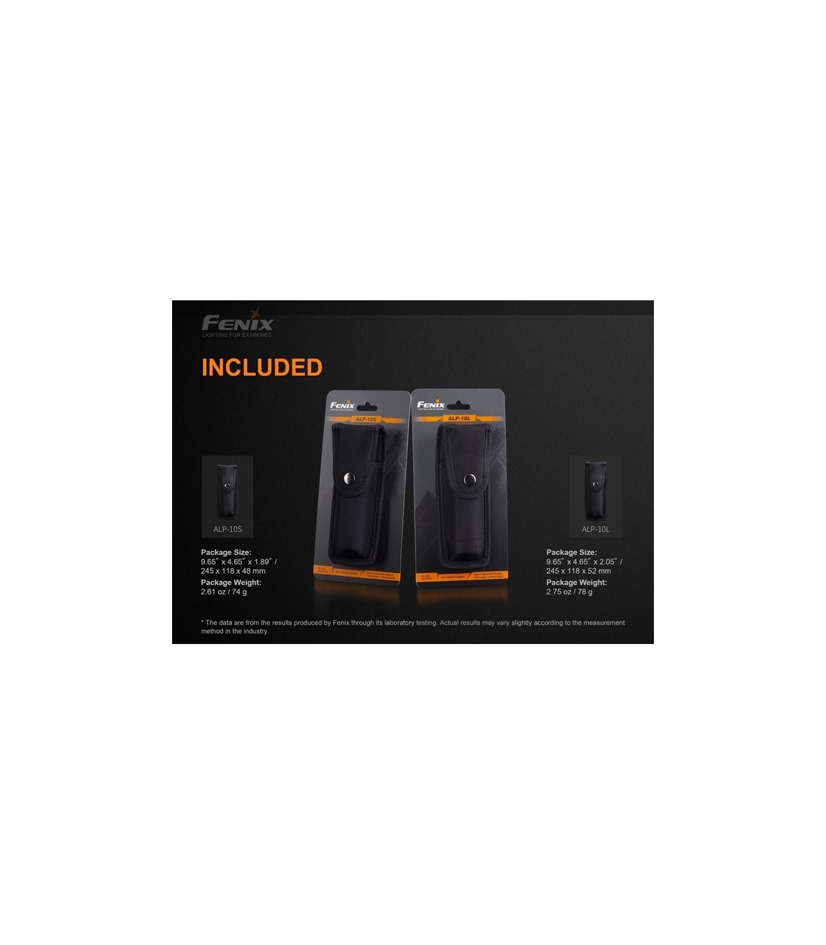 Proteja su inversión Fenix con la funda ALP-10l. Esta funda completamente nueva tiene excelentes características, incluido el material de nailon moldeado por presión en caliente y un diseño de liberación rápida que es perfecto para los agentes del orden. La funda ALP-10 está disponible en dos tamaños diferentes para adaptarse a diferentes linternas Fenix.