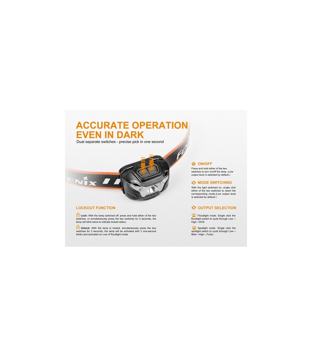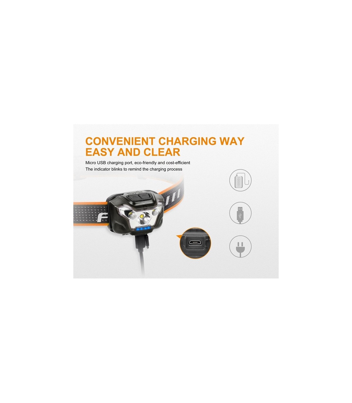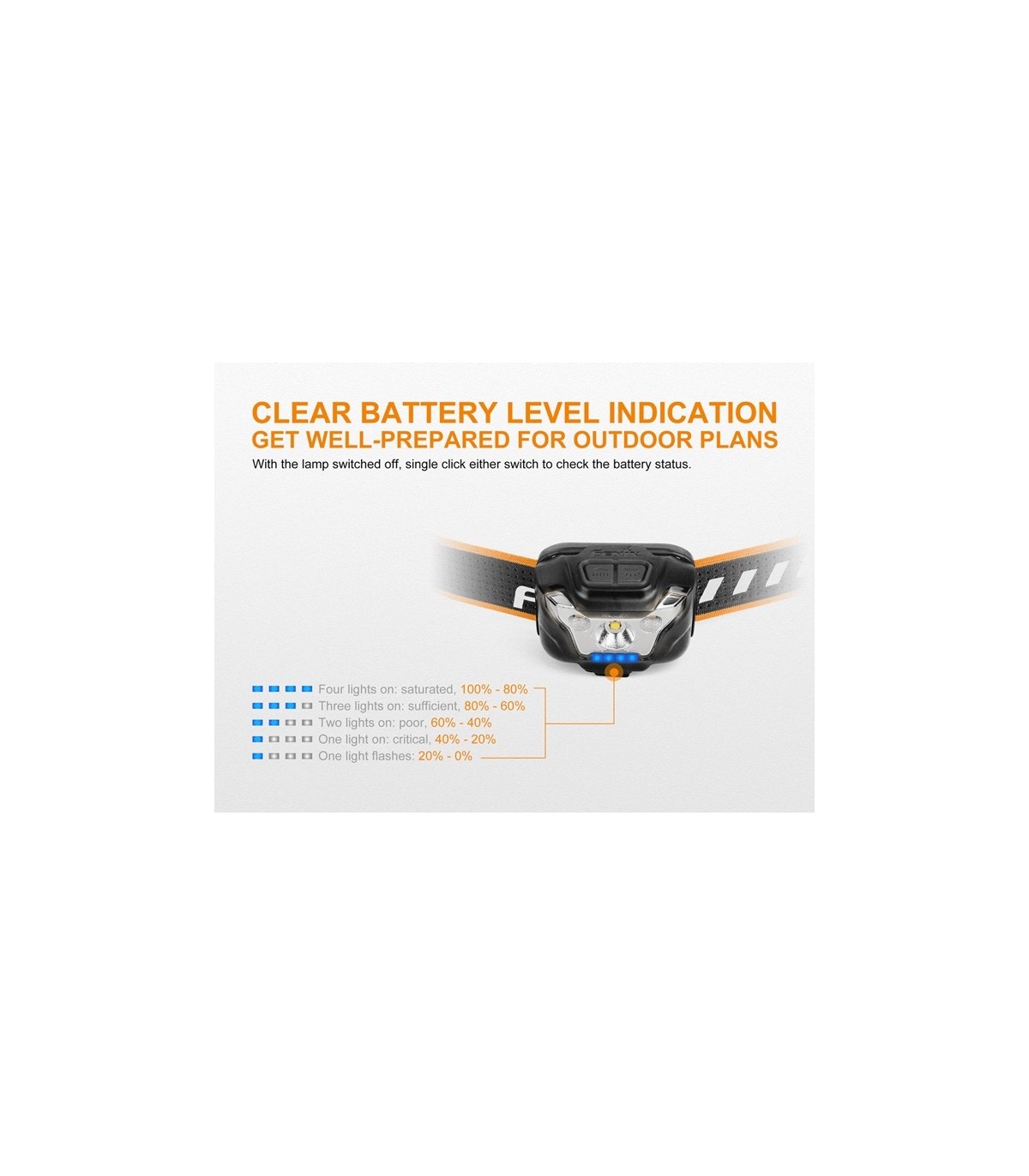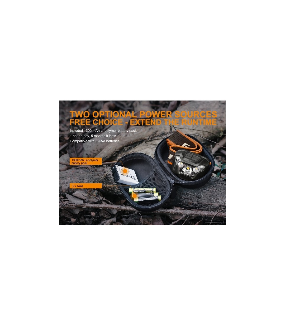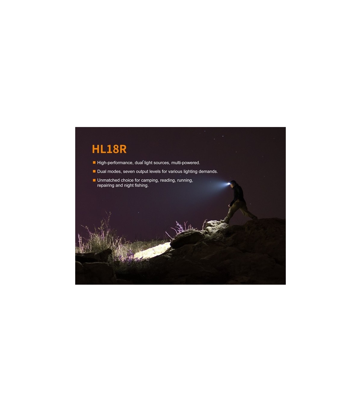 El frontal Fenix HL18R es un frontal de alto rendimiento (400 lúmenes) con dos sistemas de iluminación y múltiples fuentes de alimentación (batería de litio polímero de 1300 mAh o 3 pilas AAA alcalinas). El frontal emite una potencia máxima de 400 lúmenes con un tiempo máximo de ejecución de 150 horas. Dos modos de iluminación. Cuatro niveles para running y dos más SOS para el de inundaciónadecuados para varias demandas de iluminación. Además de la capacidad de carga por micro USB y la posible elección de la batería AAA, es una opción inigualable para ultra trail running, acampar, leer, pescar, etc…