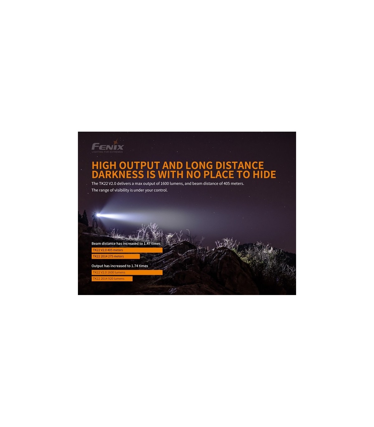 Linterna Fénix TK22 V2.0 1600 Lúmenes y 405 mts (incluye batería ARB-L21-5000U y cable para cargarla)