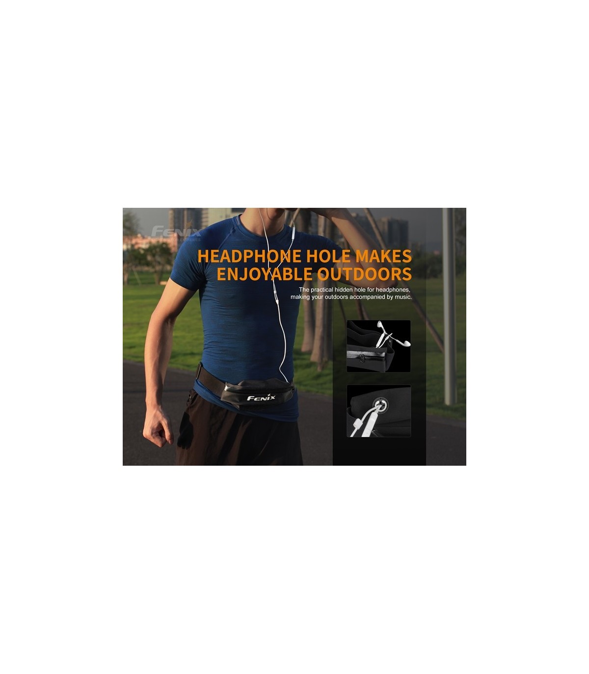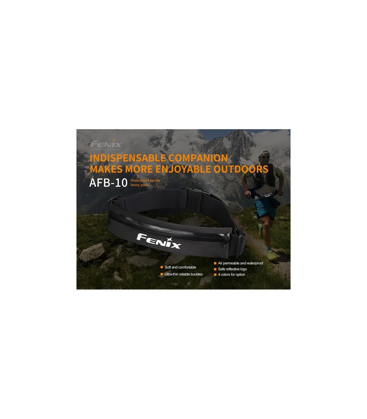 La Fenix AFB-10 es una riñonera deportiva impermeable con gran capacidad de almacenamiento. Cuenta con correa ajustable para la cintura y orificio para auriculares en forma de cruz, lo que hace que correr sea más agradable. Además, el logotipo reflectante garantiza una carrera nocturna más segura.