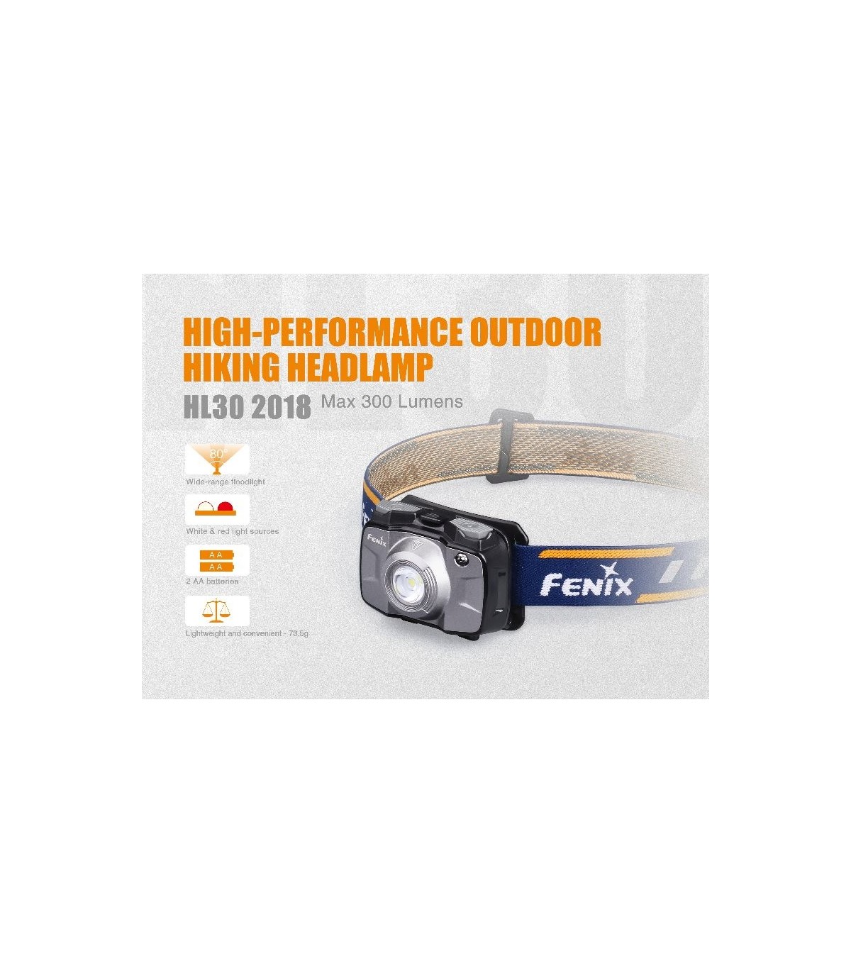 Frontal Fénix HL30 Gris 300 Lúmenes (2XAA)