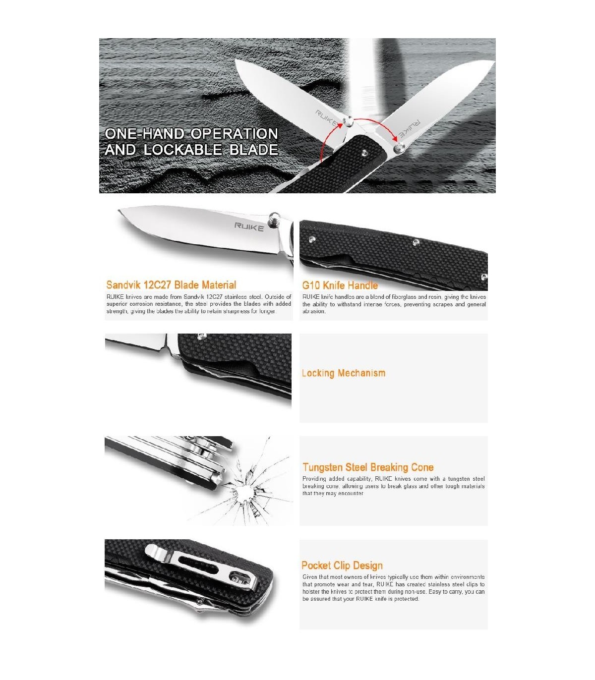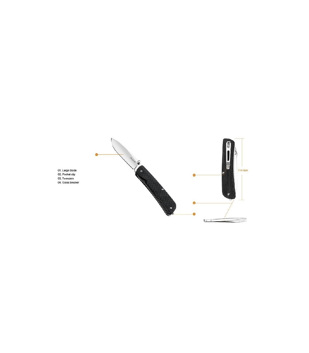 Cada cuchillo de la serie LD está equipado con un clip de bolsillo y un rompedor de vidrio de acero de tungsteno lo cual hacen que sea una cuchillo ultra-portable y súper práctico para situaciones de emergencia. La cuchilla de 85 mm de una sola mano, está hecha de acero inoxidable Sandvik 12C27 puede ser abierta rápidamente por el perno prisionero, la serie LD viene en varias combinaciones de herramientas versátiles para adaptarse mejor a sus requerimientos.