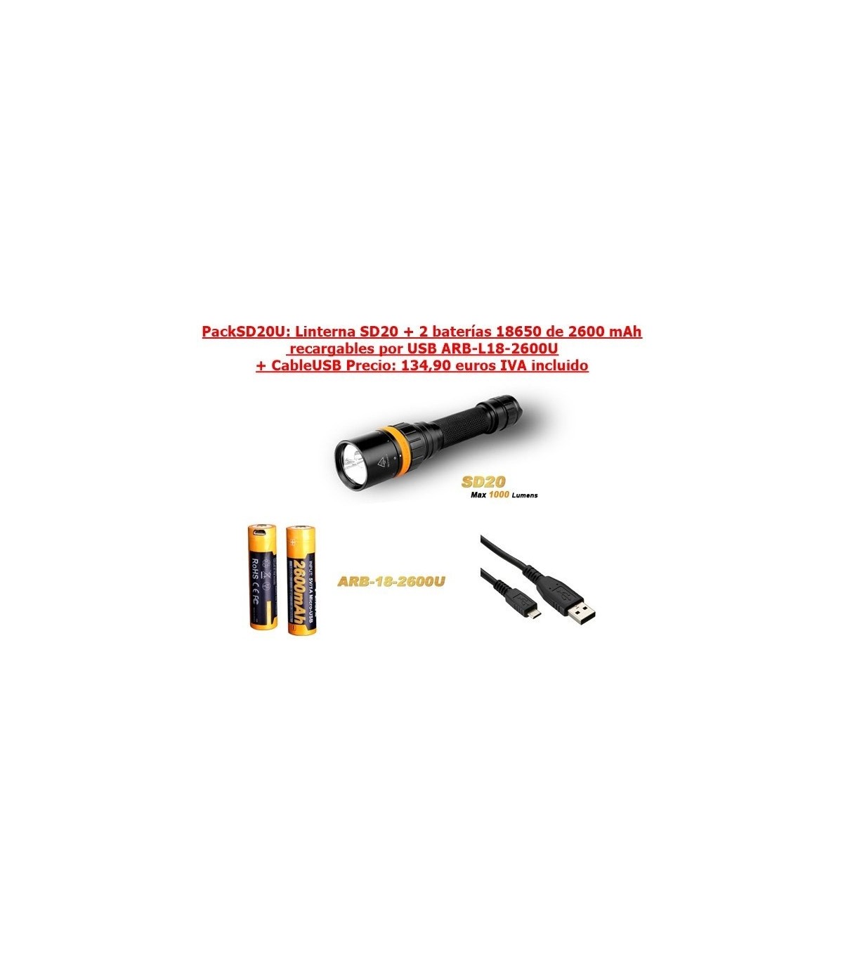 PACKSD20U: Linterna SD20 + 2 x ARB-L18-2600U + CableUSB
