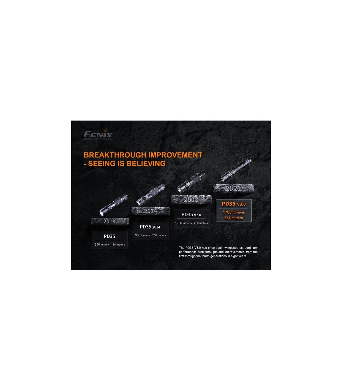 La nueva versión mejorada PD35 V3.0 de la linterna táctica , ha sido creada para ampliar esta serie de linternas PD35 que esta considerada una de las mejores linternas tácticas del mercado.
