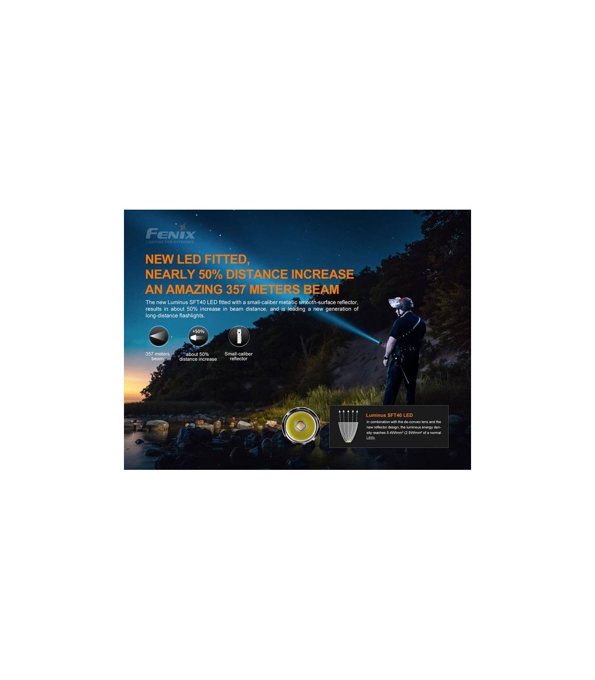 Esta Linterna utiliza el Led Luminus SFT40 LED con una vida útil de 50.000 horas.