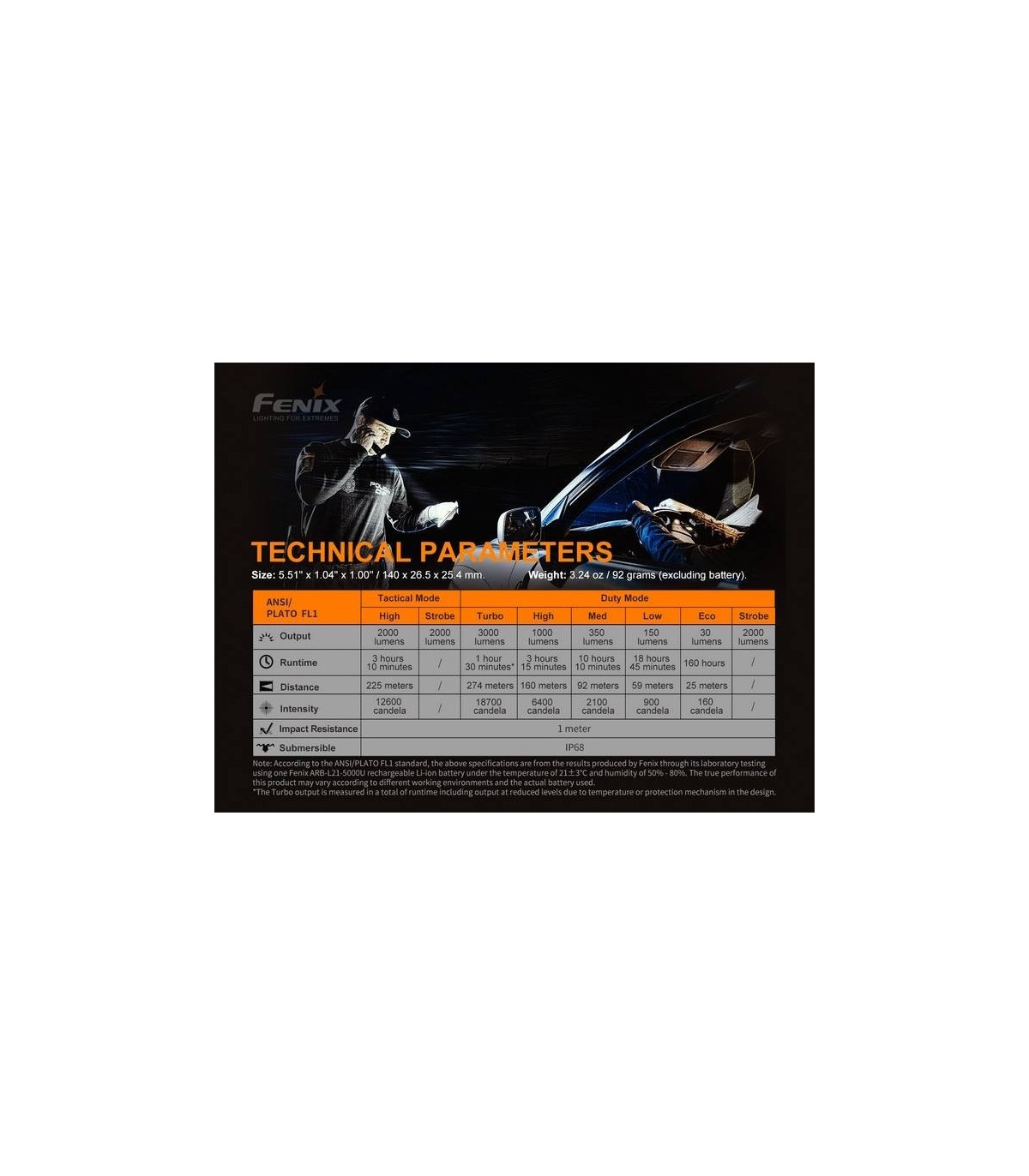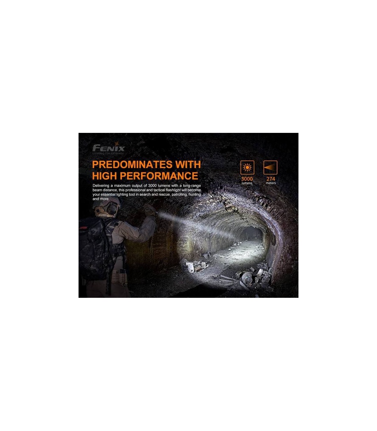 ¡La linterna PD36 TAC tiene una impresionante salida de 3000 lúmenes!