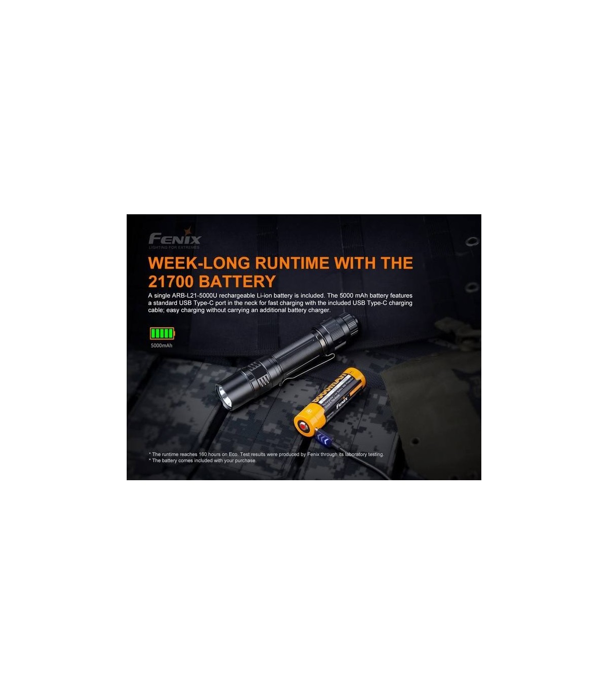 - Incluida: batería recargable USB tipo C Fenix ARB-L21-5000U
