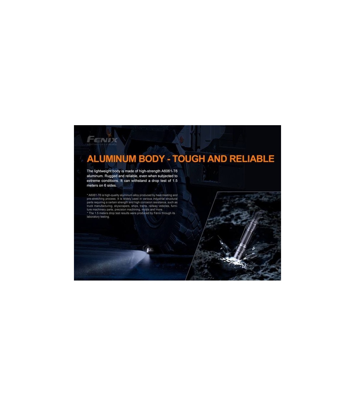 Fénix siempre produce linternas de la más alta calidad, lo que las hace resistentes y duraderas. La PD36 TAC está hecha de una aleación de aluminio A6061-T6 extremadamente resistente.