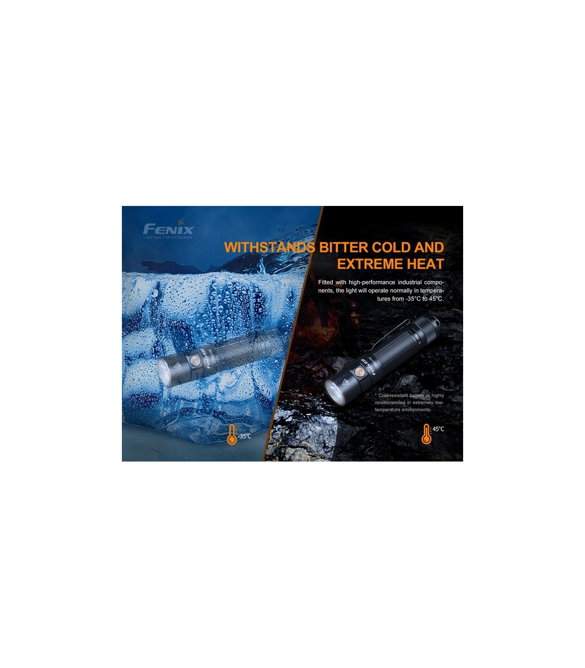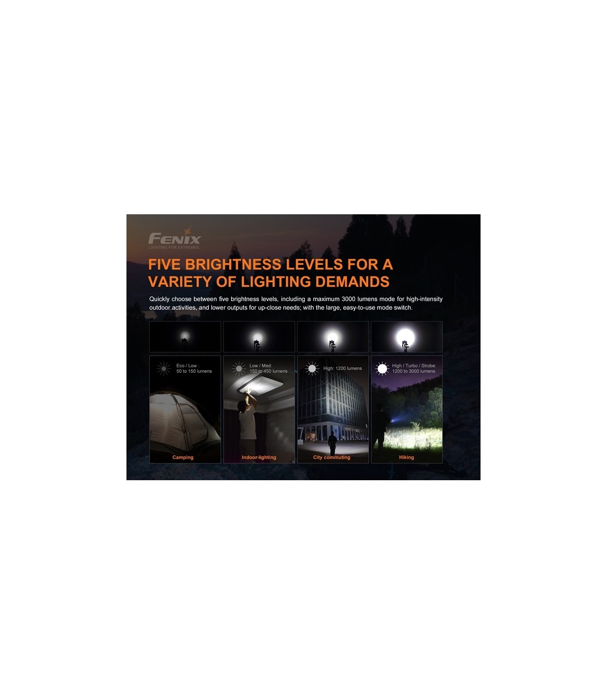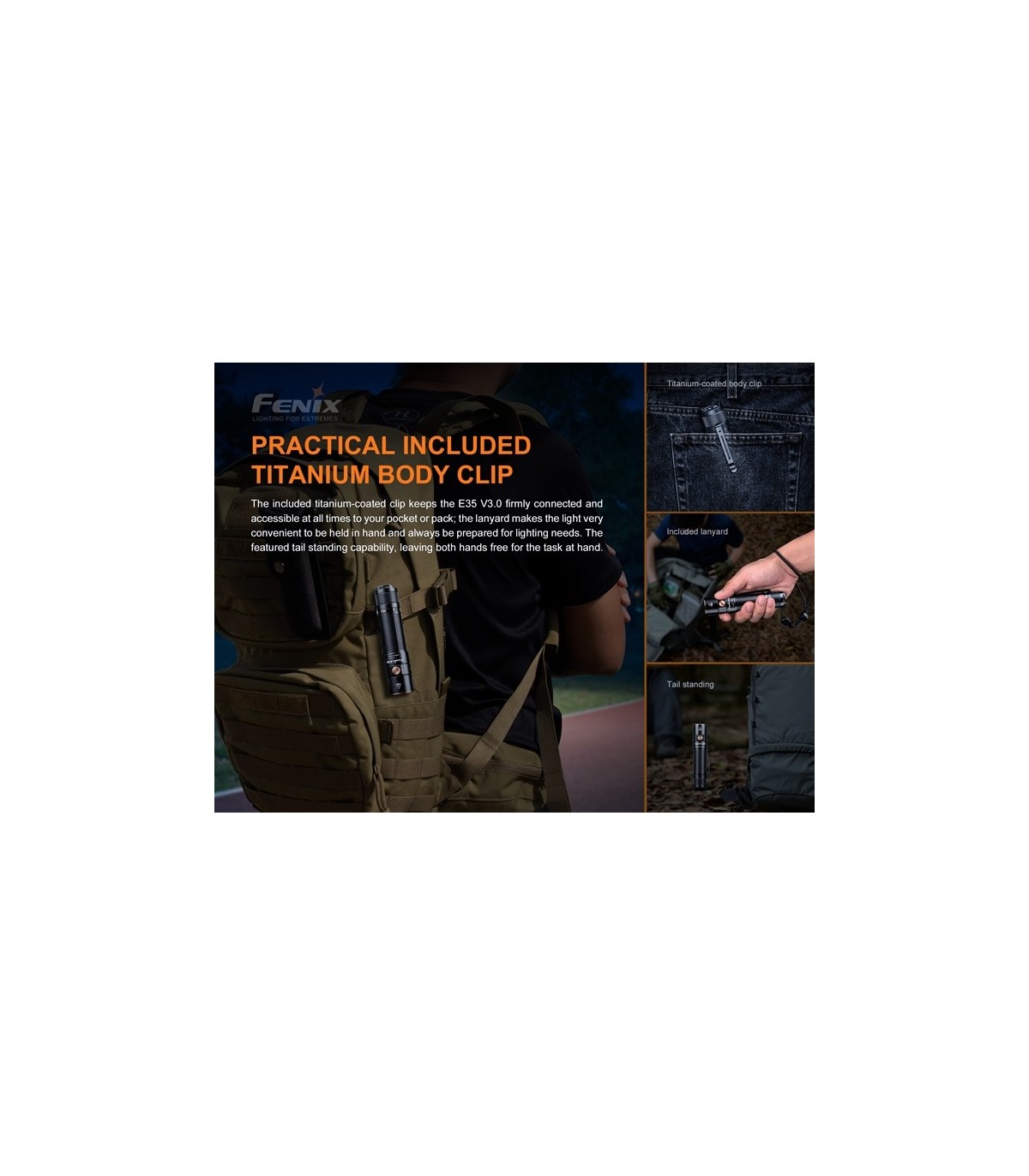 La edición 2020 de la linterna Fenix E35 V3.0 supone un gran avance. Incluye una batería 21700 y emite una salida máxima de hasta 3000 lúmenes y arroja una distancia de haz de 240 metros. Con tan solo 11,8 cms, esta luz EDC estará rápidamente en su lista de linternas favoritas por su tamaño compacto y fácil operación. Con un interruptor fácil de usar se puede usar en cualquier situación. Tiene cinco modos de brillo. Está diseñada con lentes ópticas ultrafinas, la E35 V3.0 crea un haz suave y equilibrado de luz, ideal para lectura e iluminación nocturna. Sus características adicionales son la indicación del nivel de la batería de arranque y la advertencia de bajo voltaje. La E35-V3.0 se ha hecho un nombre por ser una herramienta de iluminación confiable y sencilla y se ha ganado su fama como una de las mejores linternas de uso diario; desplazamientos urbanos o iluminación exterior.