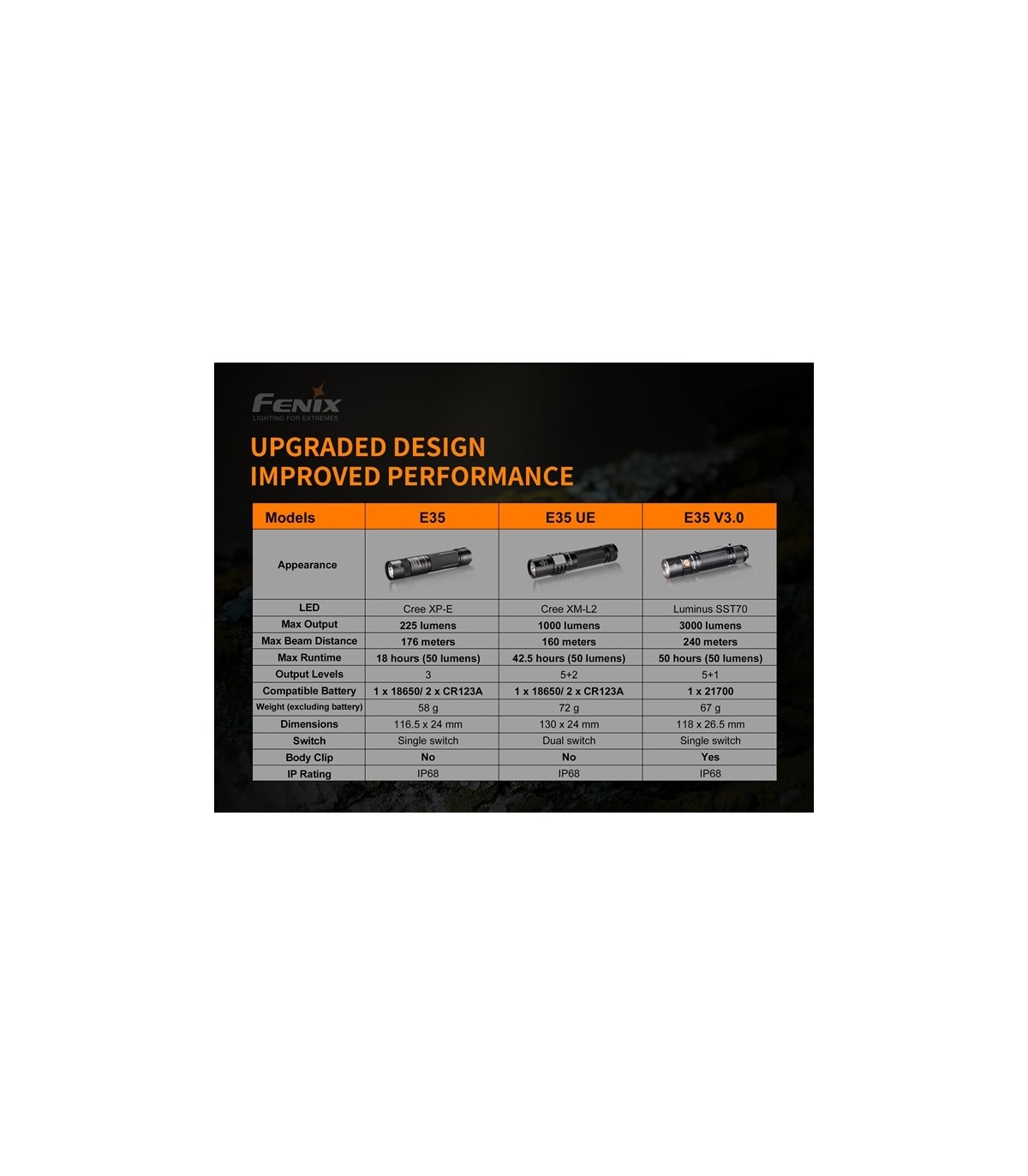 Fénix E35-V3.0 3000 Lúmenes (Incluye batería 21700 DE 5000 mAh recargable por micro USB-Tipo C)