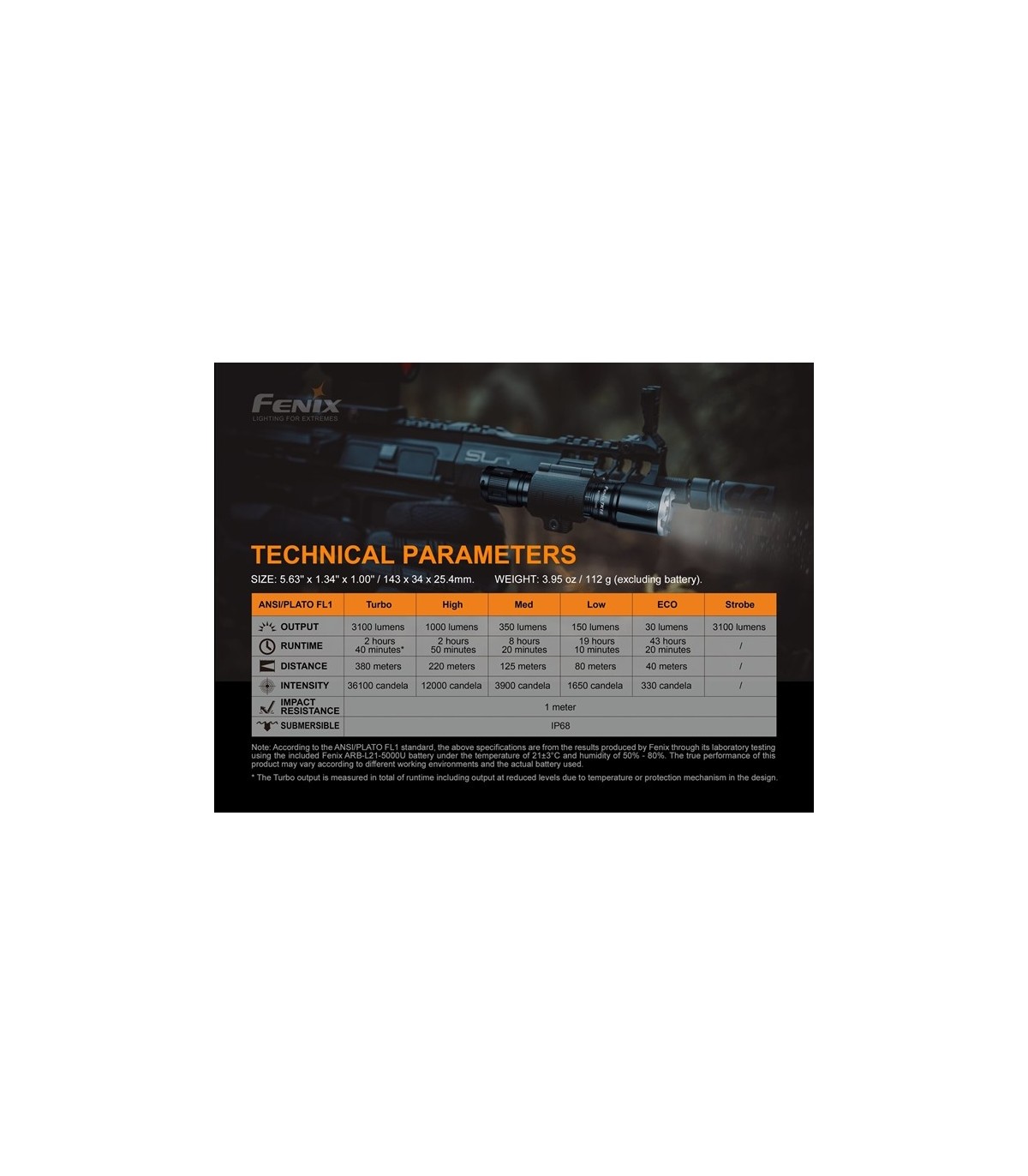 • Incluye una batería recargable de iones de litio Fenix ARB-L21-5000U. (5000 mAh)