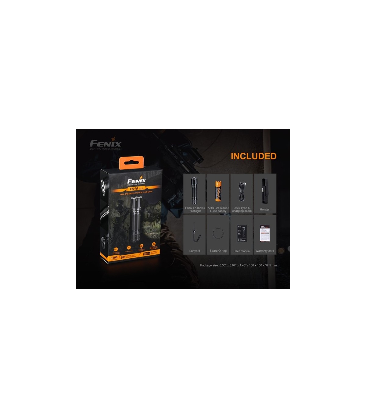 Incluye: Linterna TK16-V2.0, funda de nylon, batería ARB-L21-5000U, manual de instrucciones, garantía, correa, junta o-ring y cable de cara tipo C